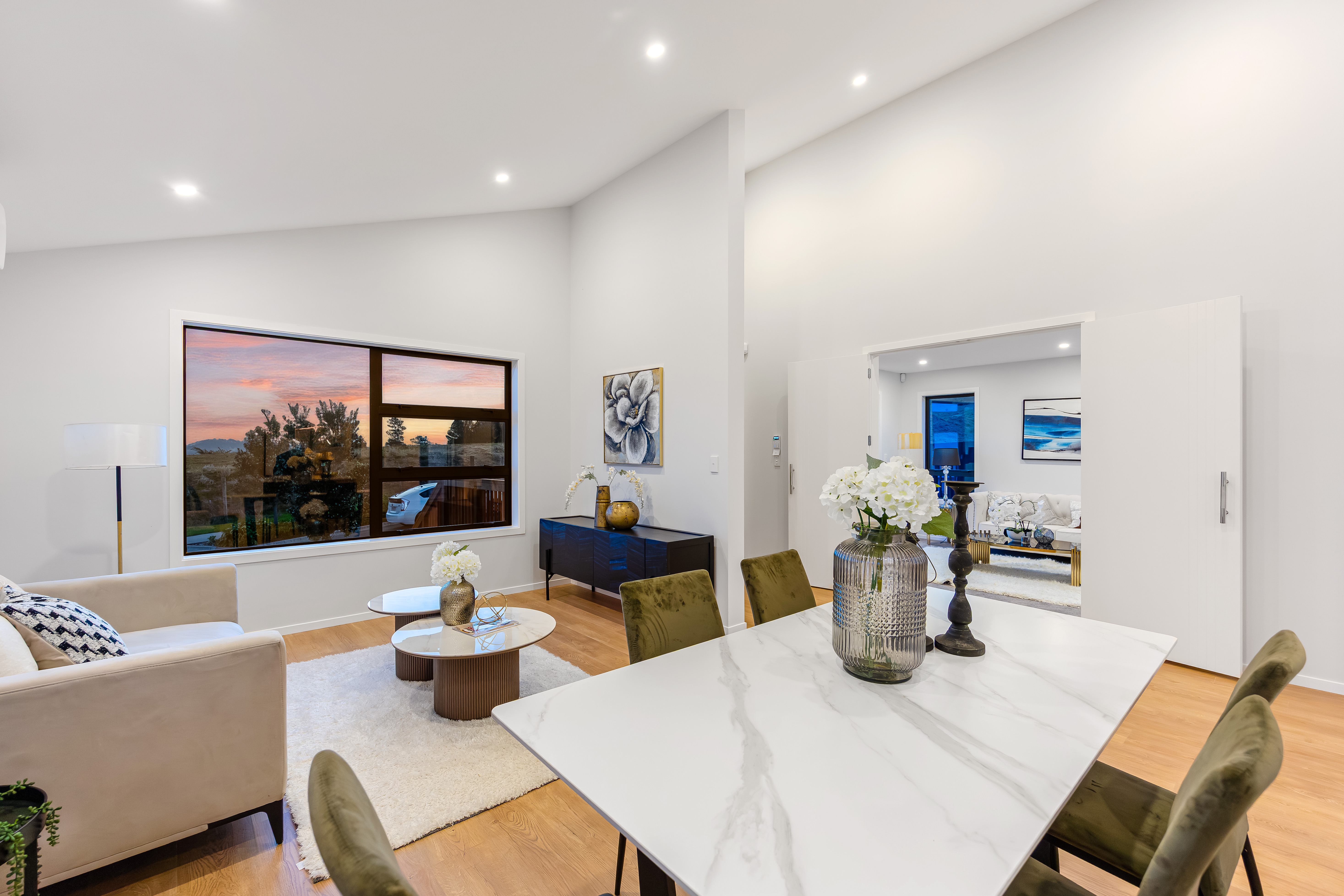 Step inside and you'll be greeted by soaring high ceilings and an abundance of natural light that fills the spacious open-plan living and dining area. The designer kitchen, fitted with stone benchtops and premium appliances, is both elegant and functional, ideal for daily life or entertaining with ease. Flowing seamlessly outdoors, the home offers a relaxed environment that feels private and inviting.