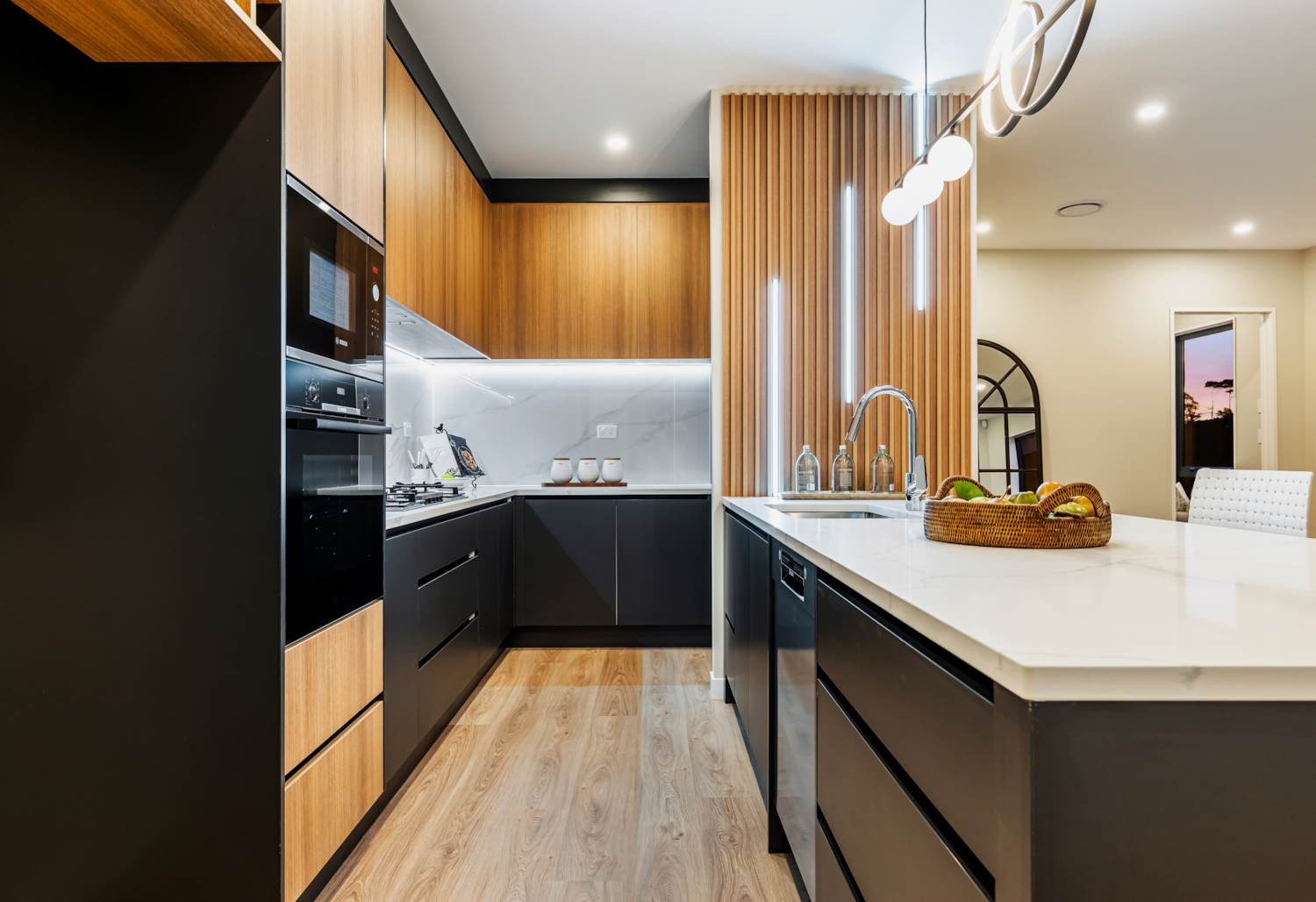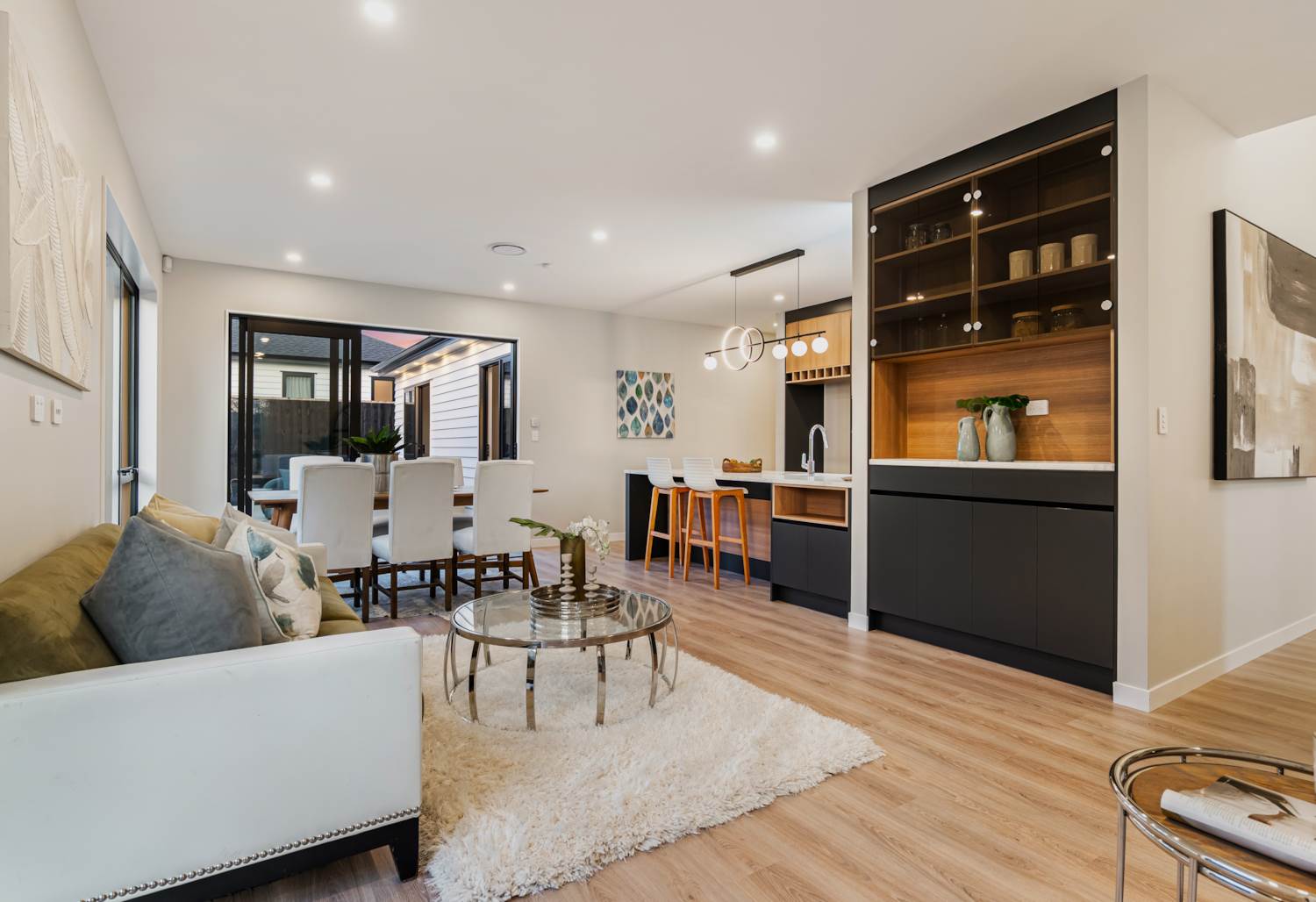 At the heart of the home is a sleek modern kitchen, complete with premium appliances, walk-in pantry, and ample bench space, perfect for cooking, hosting, and everyday family life.