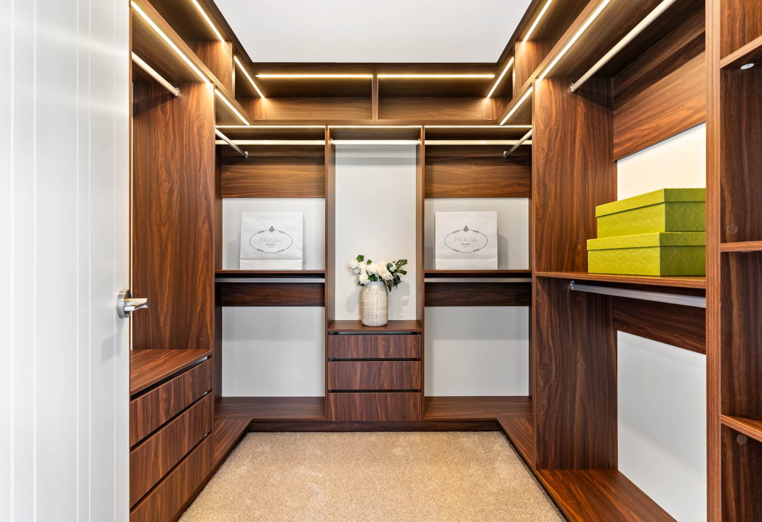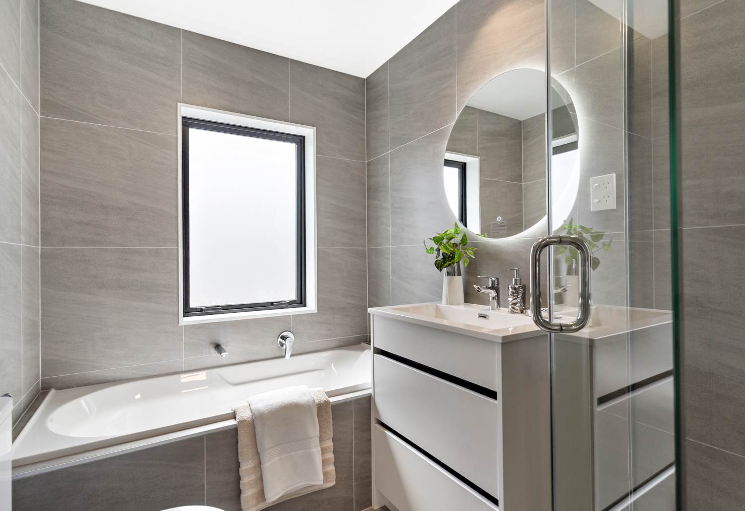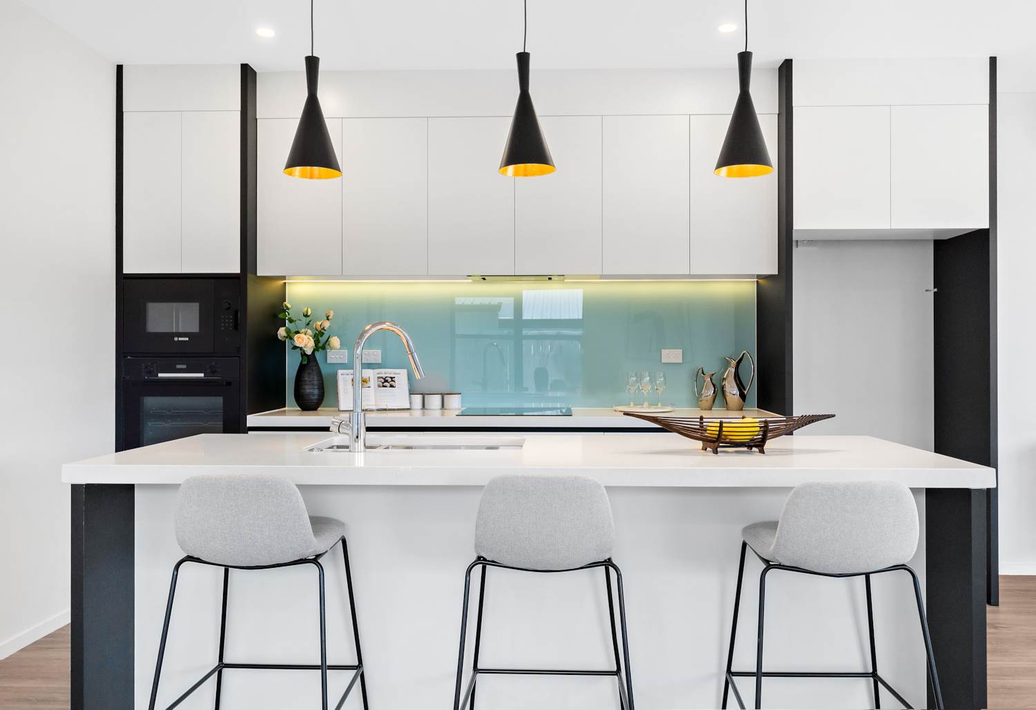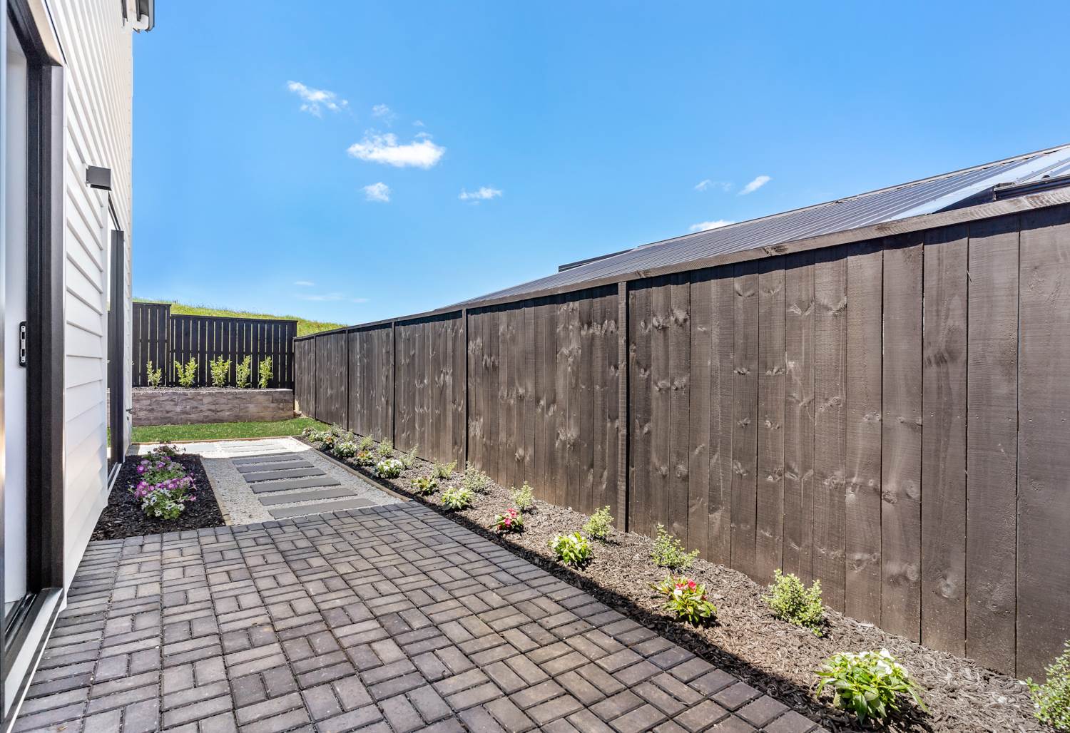 The sunny deck is ideal for weekend barbecues, kids' playtime or tranquil evening relaxation, complemented by integrated LED strip lighting that enhances the modern interior aesthetic, as well as an insulated garage door for added efficiency and comfort.