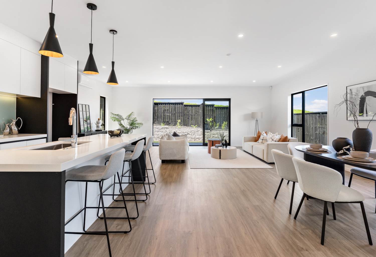The contemporary kitchen is fitted with premium appliances, durable stone benchtops and ample storage solutions, while the open-concept living and dining space connects seamlessly to a sun-drenched outdoor patio. Practical extras include an internal-access garage plus two dedicated off-street parks, with additional space to accommodate a boat or campervan, plus a fully enclosed rear yard that ensures complete privacy and safe, worry-free outdoor enjoyment.